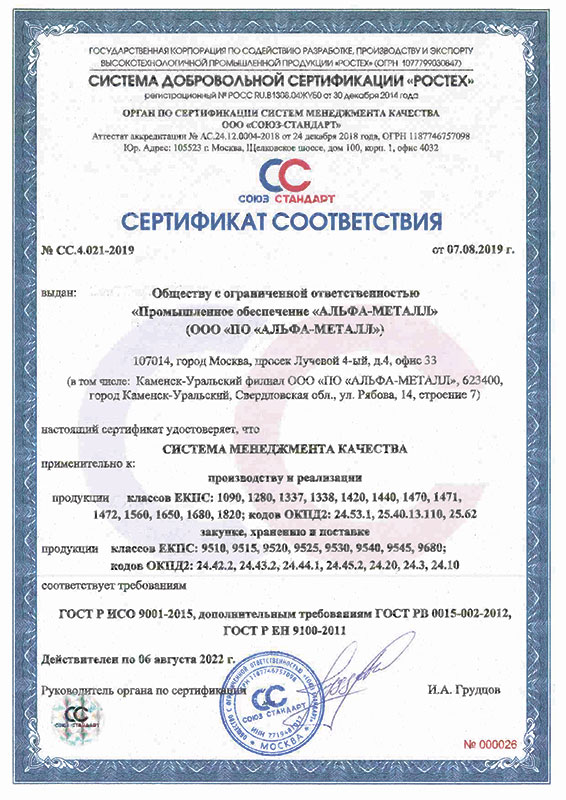 Строгий контроль от закупки до поставки и производства позволяет быть уверенными в качестве поставляемой продукции.
